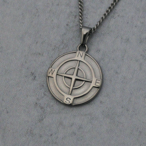 Silver Compass Pendant Chain Necklace