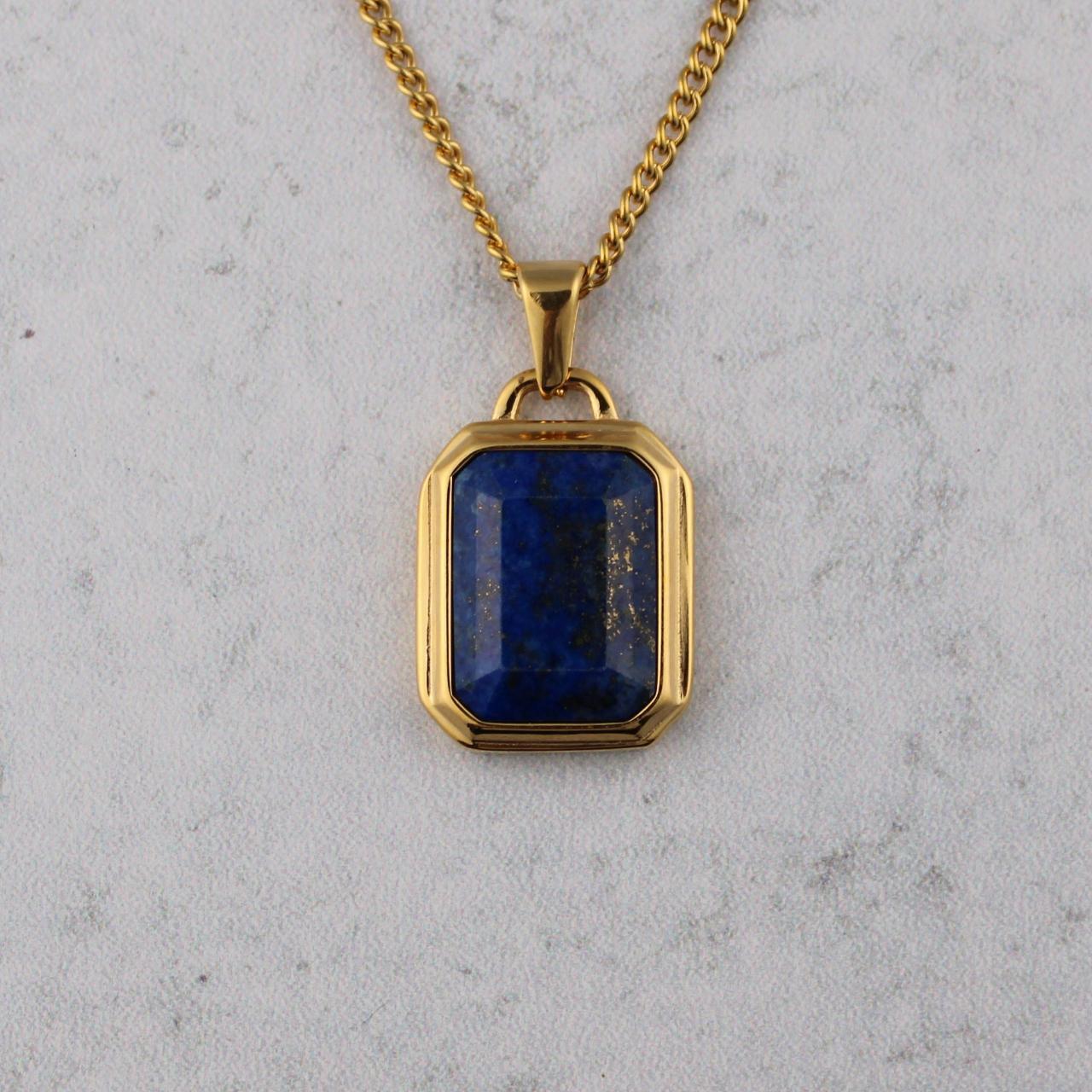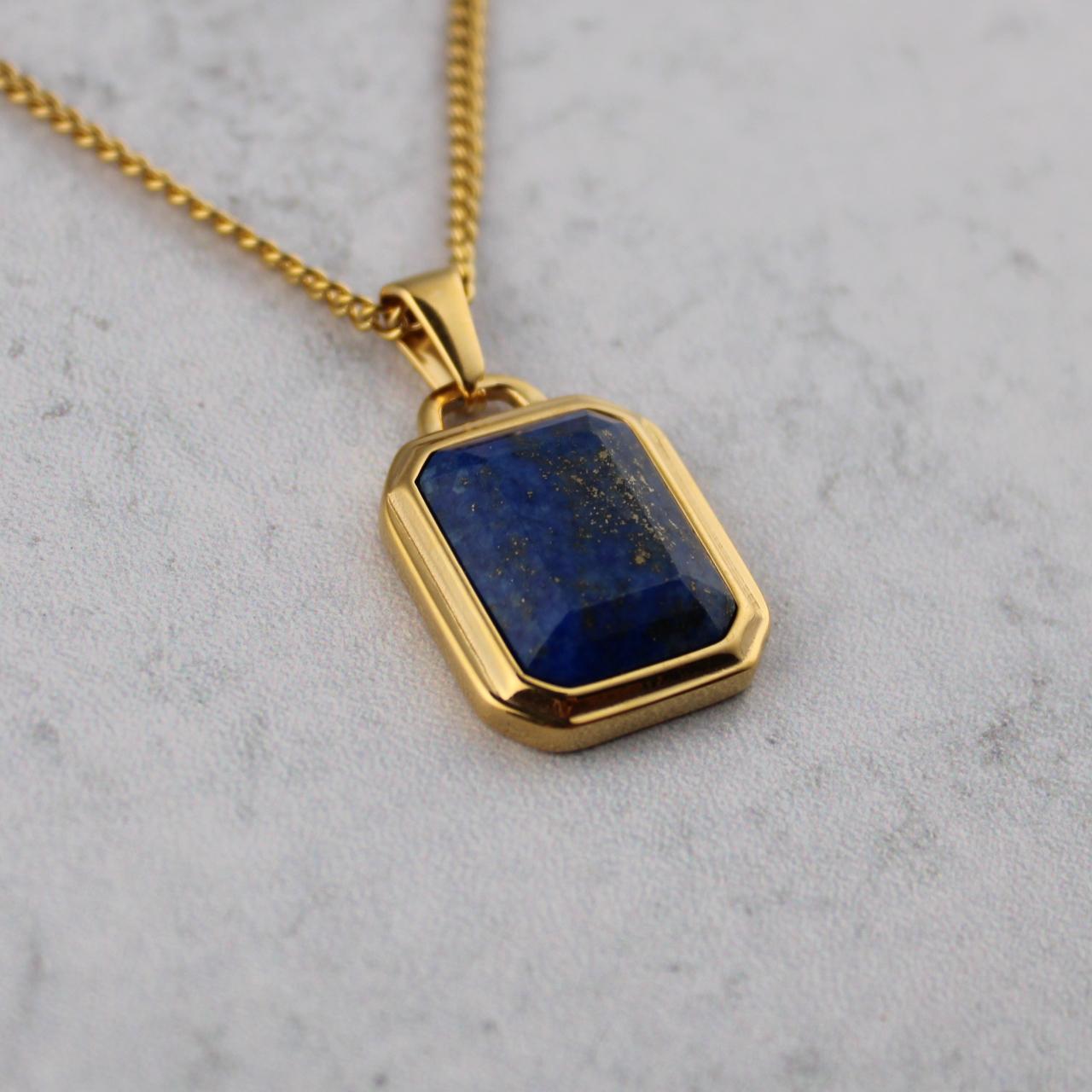 •Lapis Lazuli Stone (Design pattern will be different on each pendant)