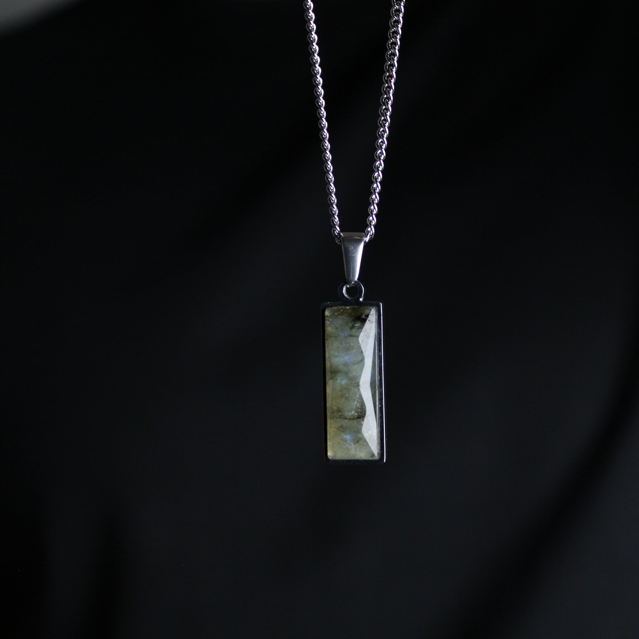 •Labradorite Natural Stone (Design pattern will be different on each pendant)